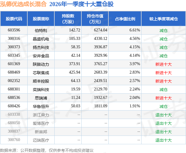 证券之星消息,日前泓德优选成长混合基金公布一季报,2026年一季度最新规模9.5亿元,季度净值涨幅为1.15%。