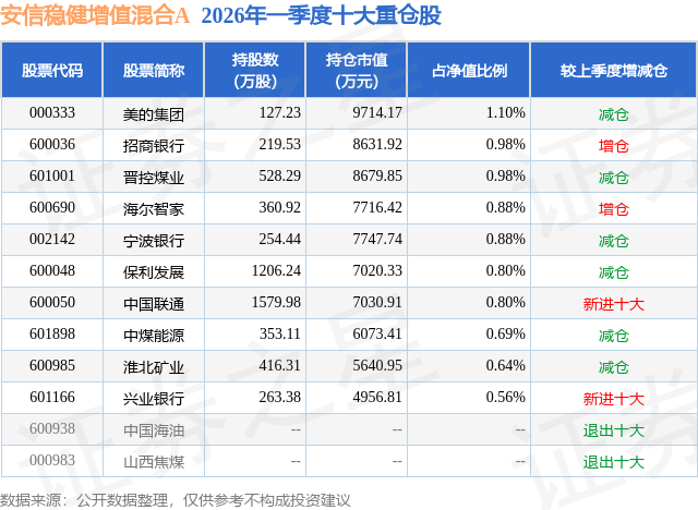 证券之星消息,日前安信稳健增值混合A基金公布一季报,2026年一季度最新规模55.15亿元,季度净值涨幅为1.73%。