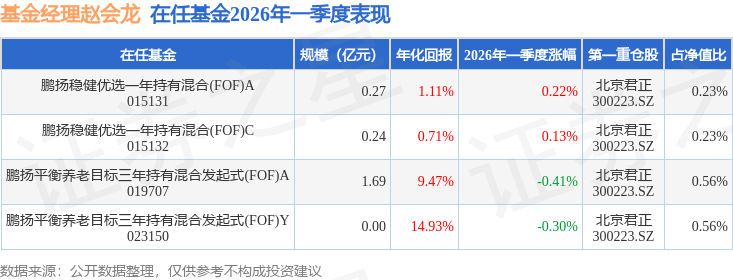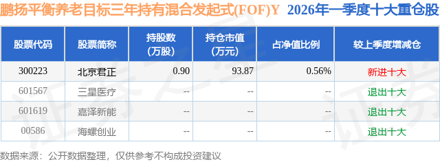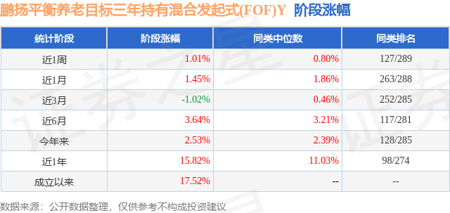 证券之星消息,日前鹏扬平衡养老目标三年持有混合发起式(FOF)Y基金公布一季报,2026年一季度最新规模0.0亿元,季度净值涨幅为-0.3%。