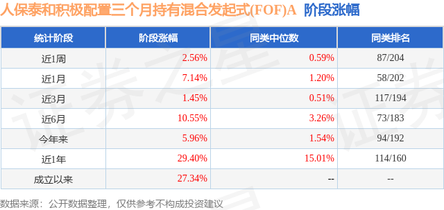 证券之星消息,日前人保泰和积极配置三个月持有混合发起式(FOF)A基金公布一季报,2026年一季度最新规模0.12亿元,季度净值涨幅为-2.8%。
