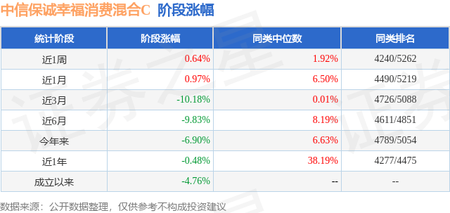 从业绩表现来看,中信保诚幸福消费混合C基金过去一年净值涨幅为-0.48%,在同类基金中排名4277/4475,同类基金过去一年净值涨幅中位数为38.19%。而基金过去一年的最大回撤为-18.11%,成立以来的最大回撤为-18.11%。
