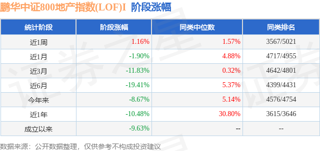 证券之星消息,日前鹏华中证800地产指数(LOF)I基金公布一季报,2026年一季度最新规模0.0亿元,季度净值涨幅为-11.09%。