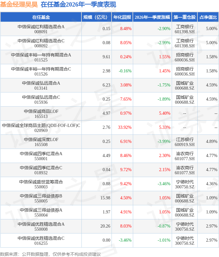 证券之星消息,日前中信保诚深度LOF基金公布一季报,2026年一季度最新规模0.25亿元,季度净值涨幅为-3.99%。