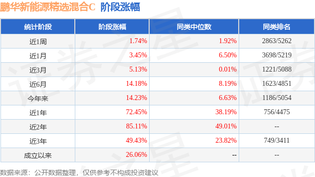 证券之星消息,日前鹏华新能源精选混合C基金公布一季报,2026年一季度最新规模13.69亿元,季度净值涨幅为6.11%。