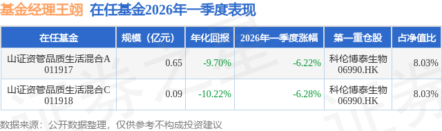 证券之星消息,日前山证资管品质生活混合A基金公布一季报,2026年一季度最新规模0.65亿元,季度净值涨幅为-6.22%。