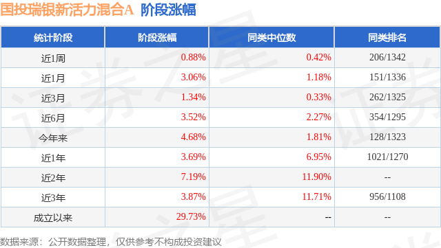 从业绩表现来看,国投瑞银新活力混合A基金过去一年净值涨幅为3.69%,在同类基金中排名1021/1270,同类基金过去一年净值涨幅中位数为6.95%。而基金过去一年的最大回撤为-4.83%,成立以来的最大回撤为-11.62%。