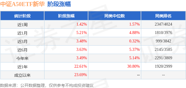 证券之星消息,日前中证A50ETF新华基金公布一季报,2026年一季度最新规模0.49亿元,季度净值涨幅为-3.63%。