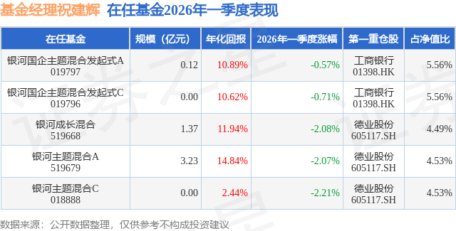 证券之星消息,日前银河主题混合A基金公布一季报,2026年一季度最新规模3.23亿元,季度净值涨幅为-2.07%。