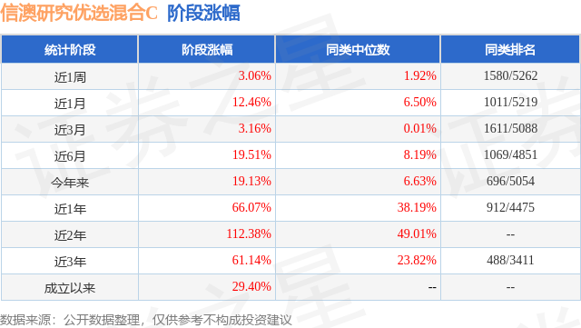 从业绩表现来看,信澳研究优选混合C基金过去一年净值涨幅为66.07%,在同类基金中排名912/4475,同类基金过去一年净值涨幅中位数为38.19%。而基金过去一年的最大回撤为-15.75%,成立以来的最大回撤为-51.97%。