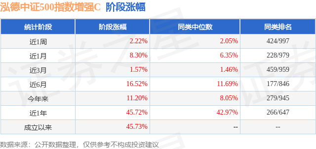 证券之星消息,日前泓德中证500指数增强C基金公布一季报,2026年一季度最新规模0.44亿元,季度净值涨幅为2.59%。