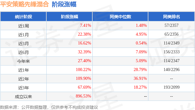 从业绩表现来看,平安策略先锋混合基金过去一年净值涨幅为100.22%,在同类基金中排名140/2296,同类基金过去一年净值涨幅中位数为28.79%。而基金过去一年的最大回撤为-17.49%,成立以来的最大回撤为-53.57%。