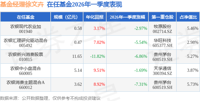 证券之星消息,日前农银消费主题混合A基金公布一季报,2026年一季度最新规模3.62亿元,季度净值涨幅为-7.31%。