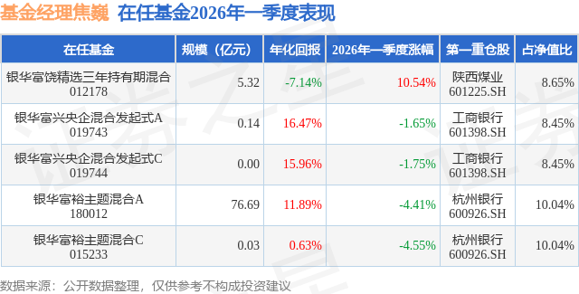 证券之星消息,日前银华富兴央企混合发起式C基金公布一季报,2026年一季度最新规模0.0亿元,季度净值涨幅为-1.75%。