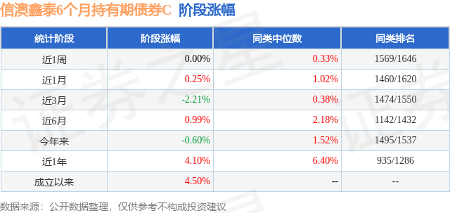 从业绩表现来看,信澳鑫泰6个月持有期债券C基金过去一年净值涨幅为4.1%,在同类基金中排名935/1286,同类基金过去一年净值涨幅中位数为6.4%。而基金过去一年的最大回撤为-3.16%,成立以来的最大回撤为-3.16%。