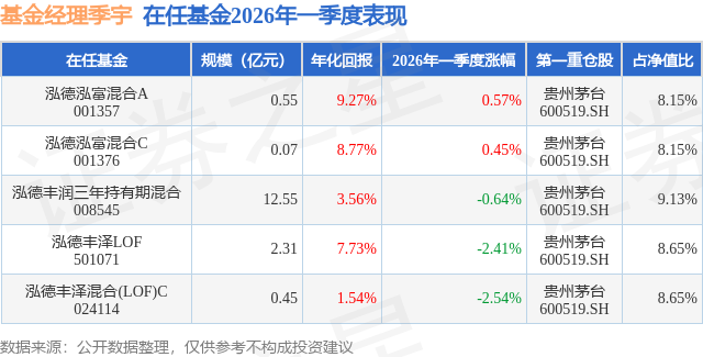 证券之星消息,日前泓德泓富混合C基金公布一季报,2026年一季度最新规模0.07亿元,季度净值涨幅为0.45%。
