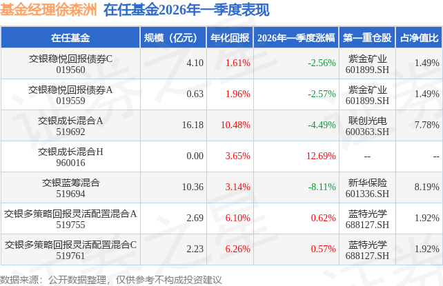 证券之星消息,日前交银成长混合A基金公布一季报,2026年一季度最新规模16.18亿元,季度净值涨幅为-4.49%。