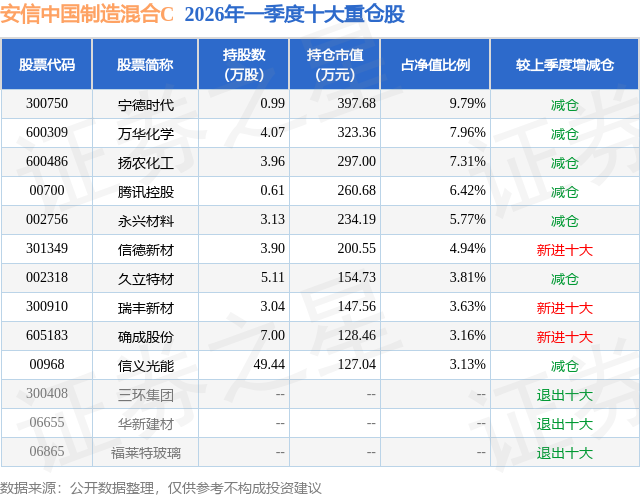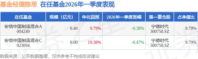 证券之星消息,日前安信中国制造混合C基金公布一季报,2026年一季度最新规模0.0亿元,季度净值涨幅为-0.47%。