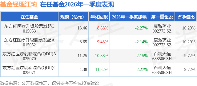 证券之星消息,日前东方红医疗升级股票发起A基金公布一季报,2026年一季度最新规模8.65亿元,季度净值涨幅为-2.14%。