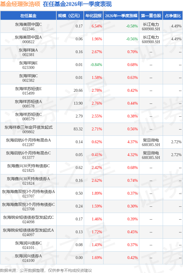 证券之星消息,日前东海启航6个月持有混合A基金公布一季报,2026年一季度最新规模0.14亿元,季度净值涨幅为4.37%。