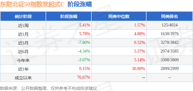 证券之星消息,日前东财北证50指数发起式C基金公布一季报,2026年一季度最新规模4.49亿元,季度净值涨幅为-12.94%。