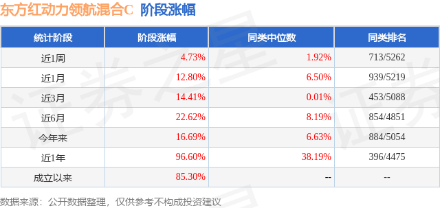 从业绩表现来看,东方红动力领航混合C基金过去一年净值涨幅为96.6%,在同类基金中排名396/4475,同类基金过去一年净值涨幅中位数为38.19%。而基金过去一年的最大回撤为-13.31%,成立以来的最大回撤为-20.56%。