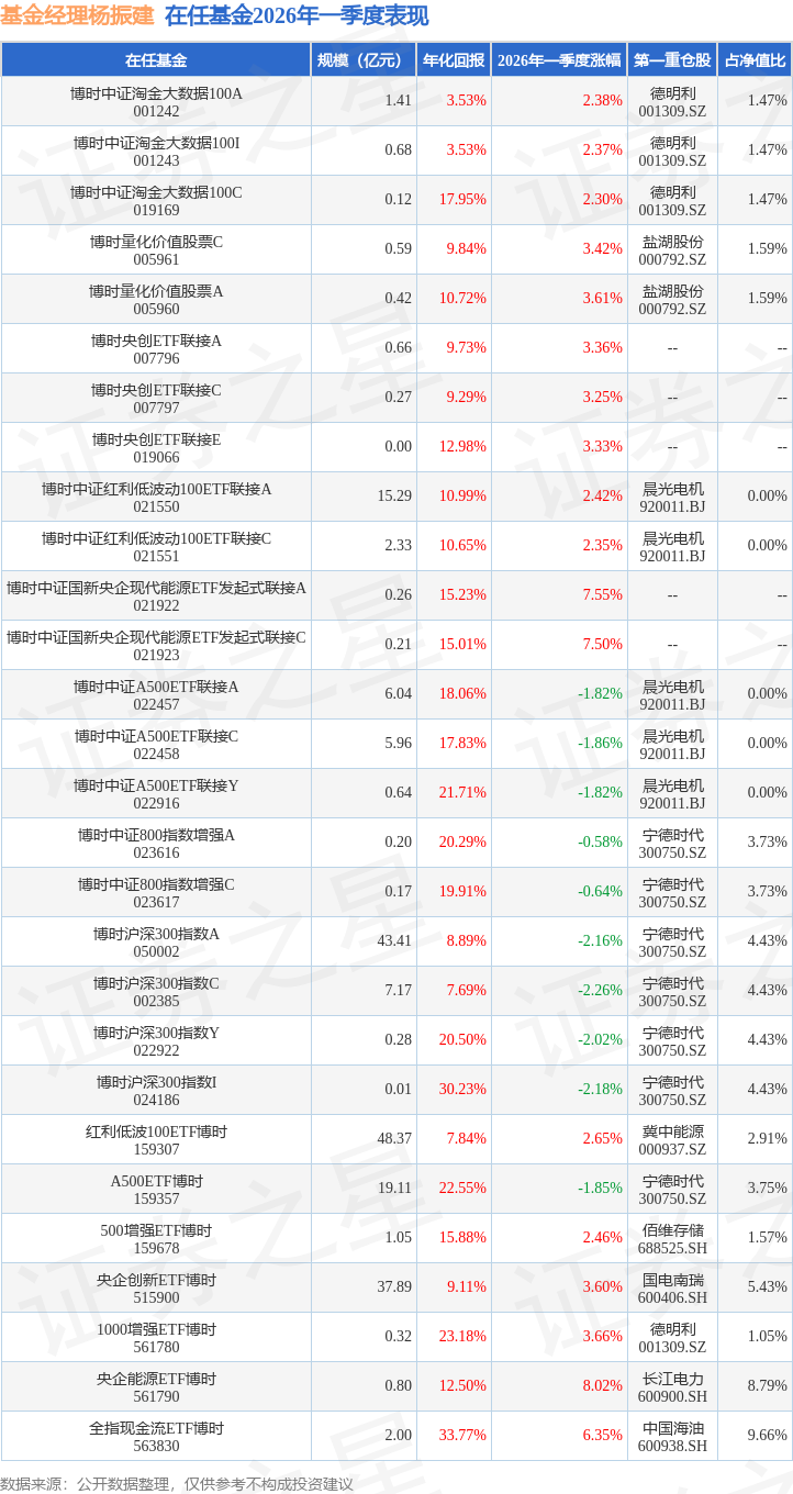 证券之星消息,日前A500ETF博时基金公布一季报,2026年一季度最新规模19.11亿元,季度净值涨幅为-1.85%。