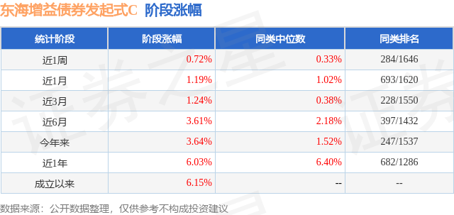 从业绩表现来看,东海增益债券发起式C基金过去一年净值涨幅为6.03%,在同类基金中排名682/1286,同类基金过去一年净值涨幅中位数为6.4%。而基金过去一年的最大回撤为-2.3%,成立以来的最大回撤为-2.3%。