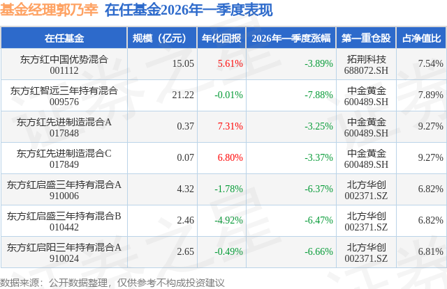 证券之星消息,日前东方红先进制造混合A基金公布一季报,2026年一季度最新规模0.37亿元,季度净值涨幅为-3.25%。