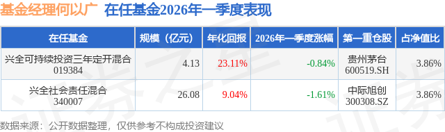 证券之星消息,日前兴全可持续投资三年定开混合基金公布一季报,2026年一季度最新规模4.13亿元,季度净值涨幅为-0.84%。