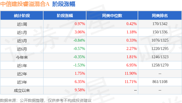 从业绩表现来看,中信建投睿溢混合A基金过去一年净值涨幅为-1.53%,在同类基金中排名1258/1270,同类基金过去一年净值涨幅中位数为6.95%。而基金过去一年的最大回撤为-6.65%,成立以来的最大回撤为-33.35%。