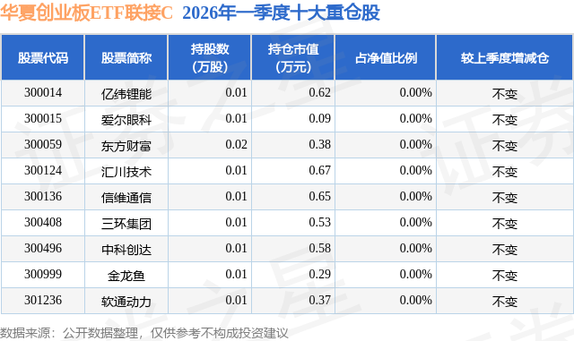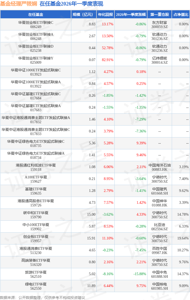 证券之星消息,日前华夏创业板ETF联接C基金公布一季报,2026年一季度最新规模8.83亿元,季度净值涨幅为-0.86%。
