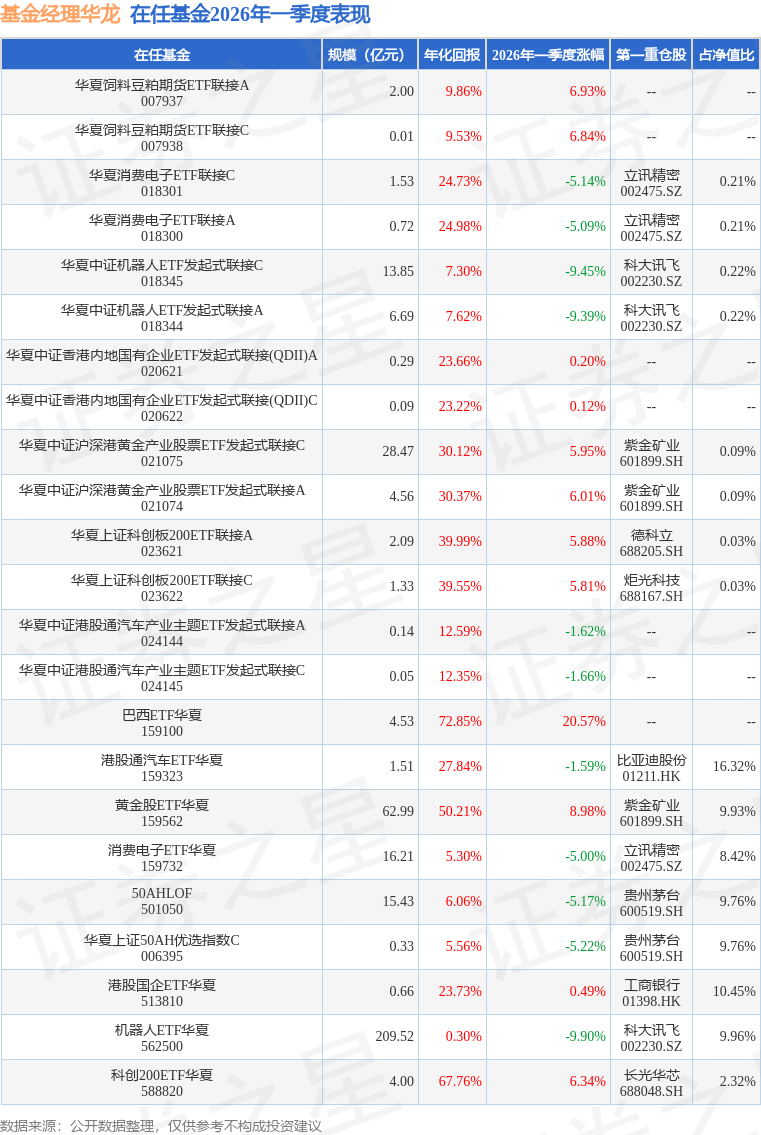 证券之星消息,日前华夏上证50AH优选指数C基金公布一季报,2026年一季度最新规模0.33亿元,季度净值涨幅为-5.22%。