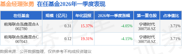 证券之星消息,日前前海联合泓鑫混合C基金公布一季报,2026年一季度最新规模0.12亿元,季度净值涨幅为-4.15%。