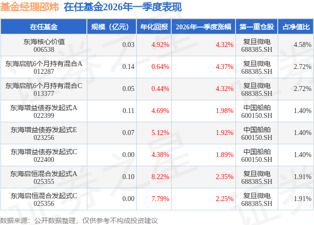 证券之星消息,日前东海核心价值基金公布一季报,2026年一季度最新规模0.03亿元,季度净值涨幅为4.32%。