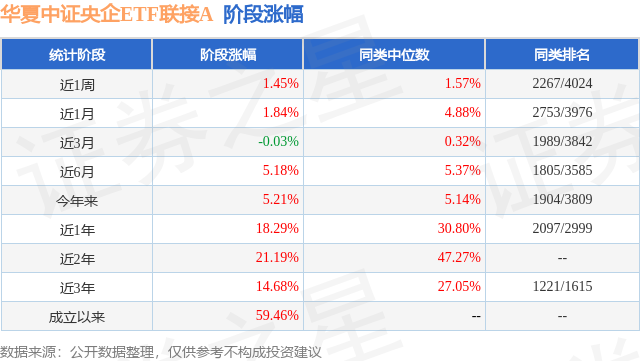 证券之星消息,日前华夏中证央企ETF联接A基金公布一季报,2026年一季度最新规模3.26亿元,季度净值涨幅为0.25%。