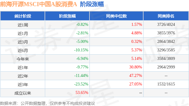 证券之星消息,日前前海开源MSCI中国A股消费A基金公布一季报,2026年一季度最新规模0.53亿元,季度净值涨幅为-6.11%。