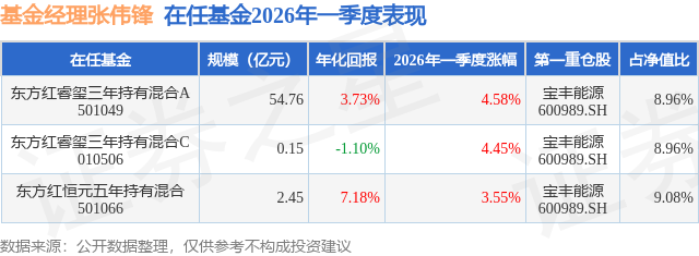 证券之星消息,日前东方红睿玺三年持有混合A基金公布一季报,2026年一季度最新规模54.76亿元,季度净值涨幅为4.58%。