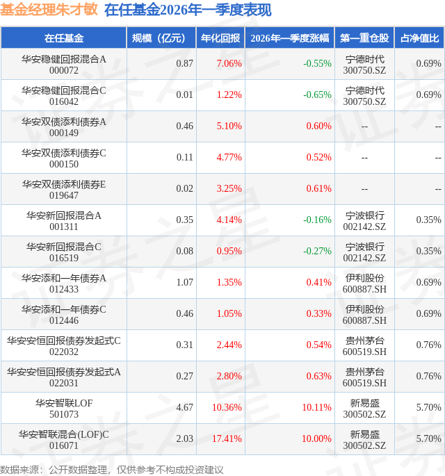 证券之星消息,日前华安稳健回报混合A基金公布一季报,2026年一季度最新规模0.87亿元,季度净值涨幅为-0.55%。