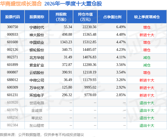 证券之星消息,日前华商盛世成长混合基金公布一季报,2026年一季度最新规模34.27亿元,季度净值涨幅为0.6%。
