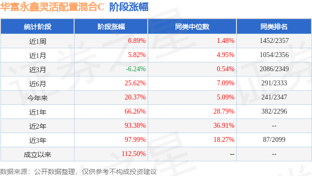 从业绩表现来看,华富永鑫灵活配置混合C基金过去一年净值涨幅为66.26%,在同类基金中排名382/2296,同类基金过去一年净值涨幅中位数为28.79%。而基金过去一年的最大回撤为-32.35%,成立以来的最大回撤为-32.35%。