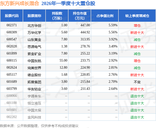 证券之星消息,日前东方新兴成长混合基金公布一季报,2026年一季度最新规模0.8亿元,季度净值涨幅为-4.34%。
