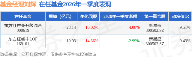 证券之星消息,日前东方红睿丰LOF基金公布一季报,2026年一季度最新规模19.93亿元,季度净值涨幅为-2.99%。