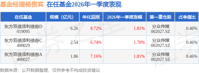 证券之星消息,日前东方双债添利债券A基金公布一季报,2026年一季度最新规模1.86亿元,季度净值涨幅为1.81%。