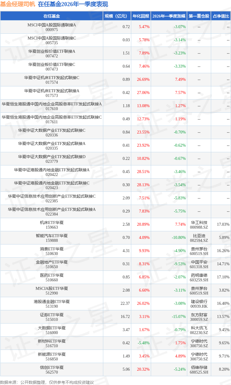 证券之星消息,日前MSCIA股ETF华夏基金公布一季报,2026年一季度最新规模2.08亿元,季度净值涨幅为-3.11%。