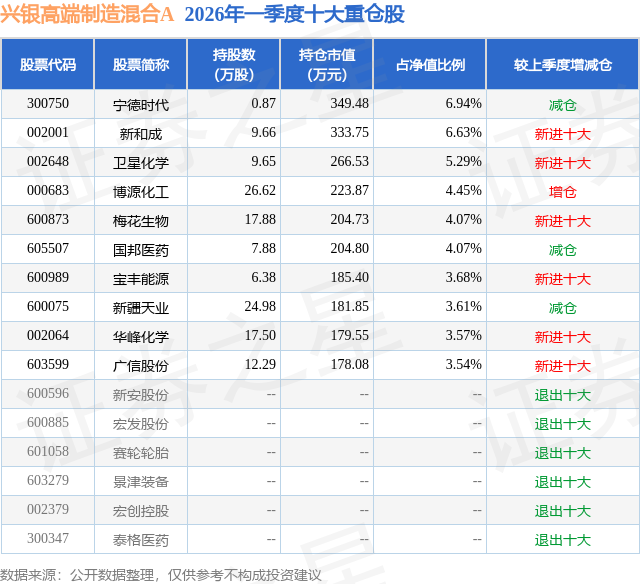 证券之星消息,日前兴银高端制造混合A基金公布一季报,2026年一季度最新规模0.31亿元,季度净值涨幅为10.58%。