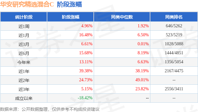 从业绩表现来看,华安研究精选混合C基金过去一年净值涨幅为39.38%,在同类基金中排名2167/4475,同类基金过去一年净值涨幅中位数为38.19%。而基金过去一年的最大回撤为-14.47%,成立以来的最大回撤为-49.23%。