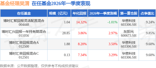 证券之星消息,日前博时汇荣回报混合C基金公布一季报,2026年一季度最新规模0.13亿元,季度净值涨幅为3.29%。