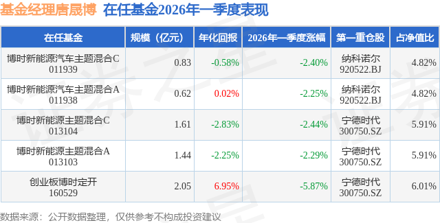 证券之星消息,日前博时新能源主题混合A基金公布一季报,2026年一季度最新规模1.44亿元,季度净值涨幅为-2.29%。