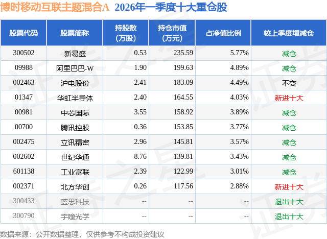 证券之星消息,日前博时移动互联主题混合A基金公布一季报,2026年一季度最新规模0.37亿元,季度净值涨幅为-7.15%。
