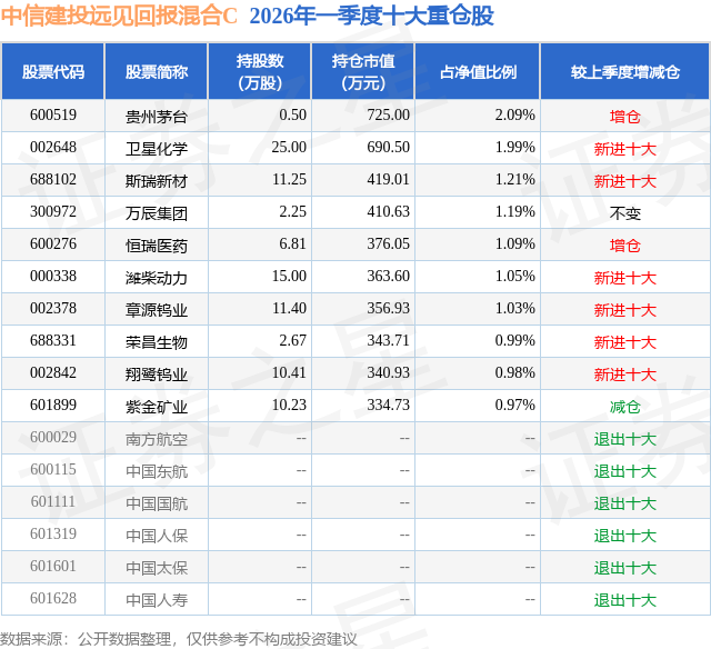 证券之星消息,日前中信建投远见回报混合C基金公布一季报,2026年一季度最新规模0.62亿元,季度净值涨幅为-3.14%。